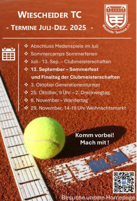 Die Clubmeisterschaften werden auch zeitnah ausgetragen und die Finals sind wieder an unserem Höhenpunkt dem Sommerfest am 13. September geplant. Mehr Informationen folgen bald – es wird wieder